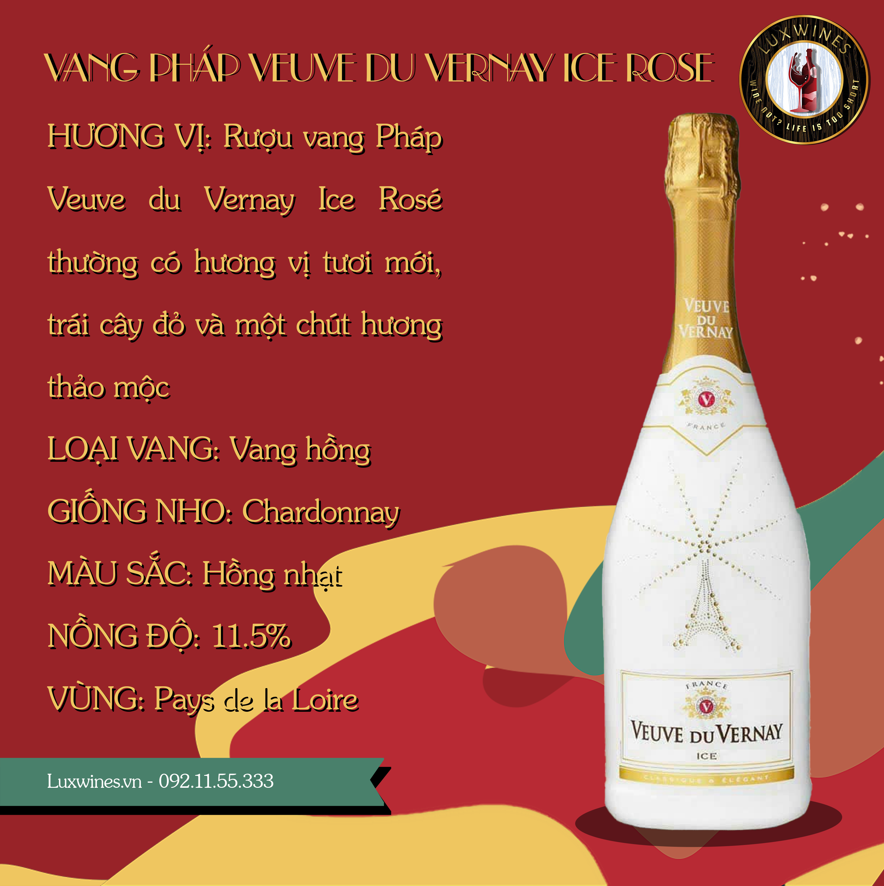 Luxwines, là một trong những đơn vị hàng đầu cung cấp và giới thiệu về Rượu Vang Veuve du Vernaÿ Ice Rosé, mang đến cho thị trường một trải nghiệm về hương vị tinh tế và đẳng cấp.